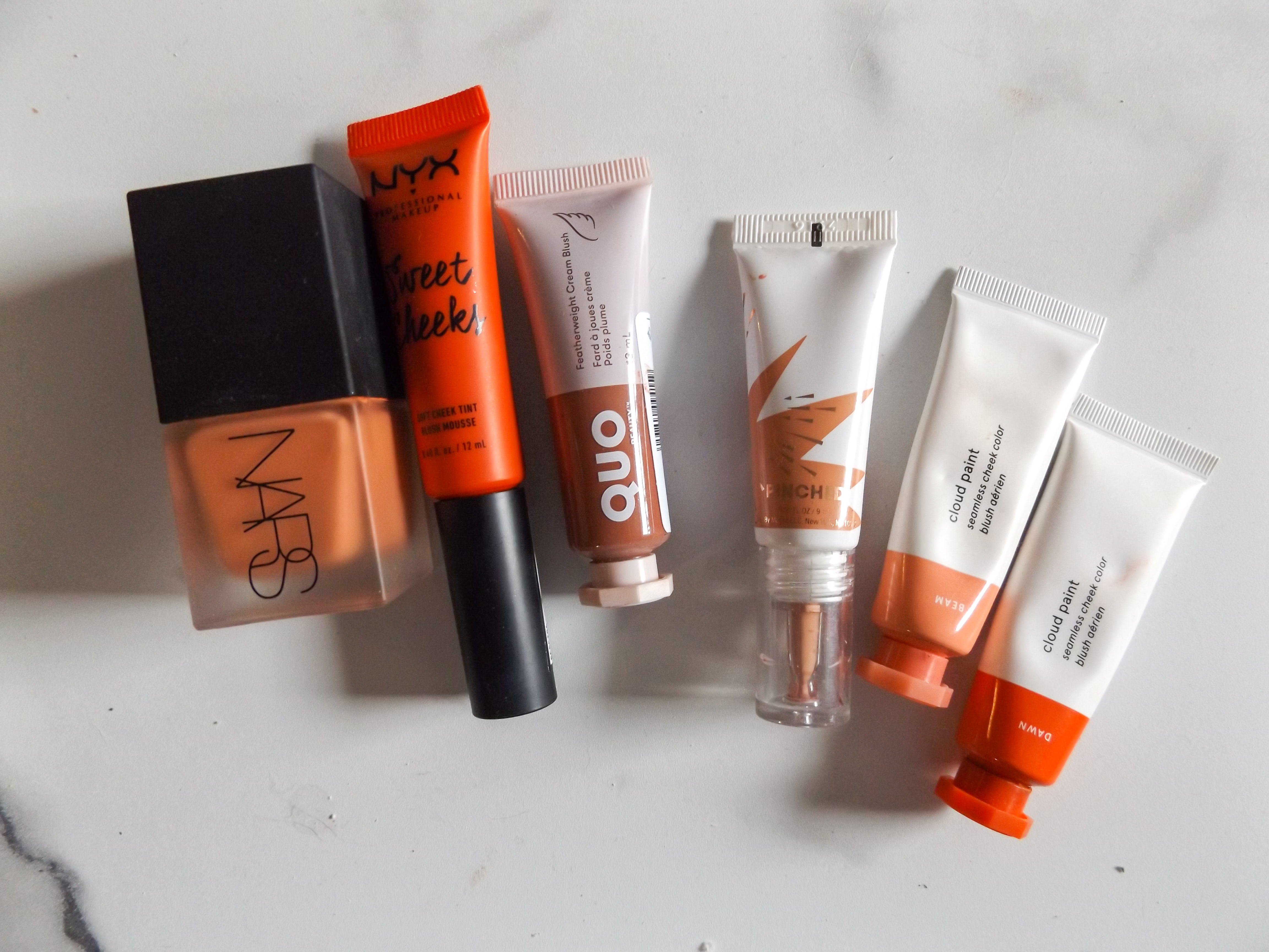 The cloud paints: Quo Featherweight liquid blush, the NYX Sweet Cheeks tint and the flower beauty blush bomb. These are three pretty popular dupes for the cloud paint that I have seen. I would say the biggest difference is that the cloud paints are a more whipped texture, but the other’s have the same finish with just a slightly different texture out of the tube. If you want a higher end dupe, the NARS liquid blush is a perfect dupe both in finish and formula.